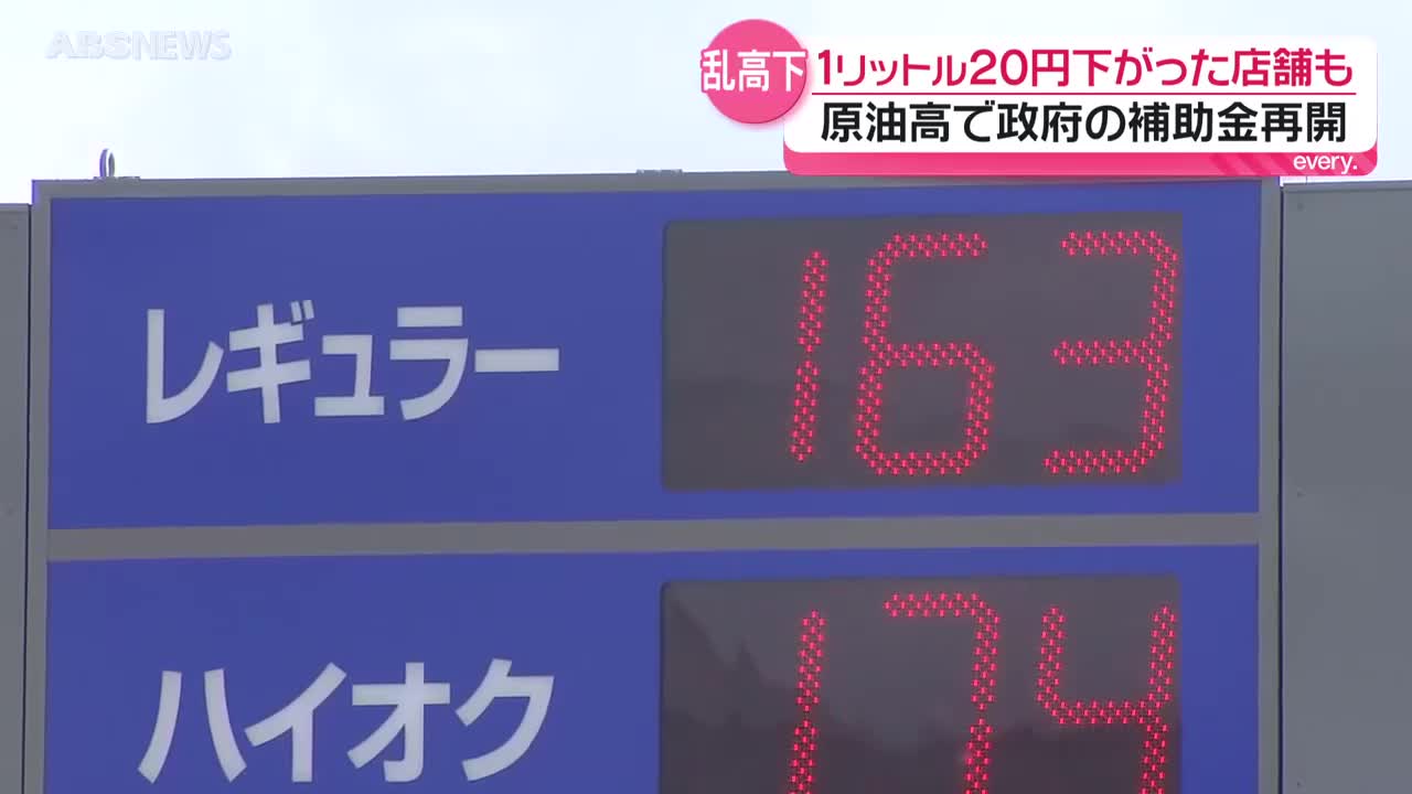原油価格急騰を受け政府が補助金を再開 県内のガソリンス…