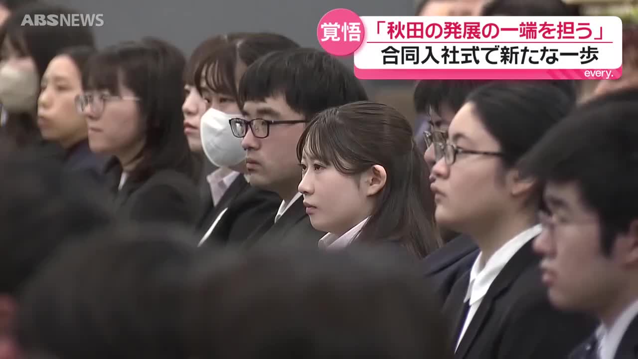 秋田市で合同入社式 春から県内で働く新社会人74人が出…