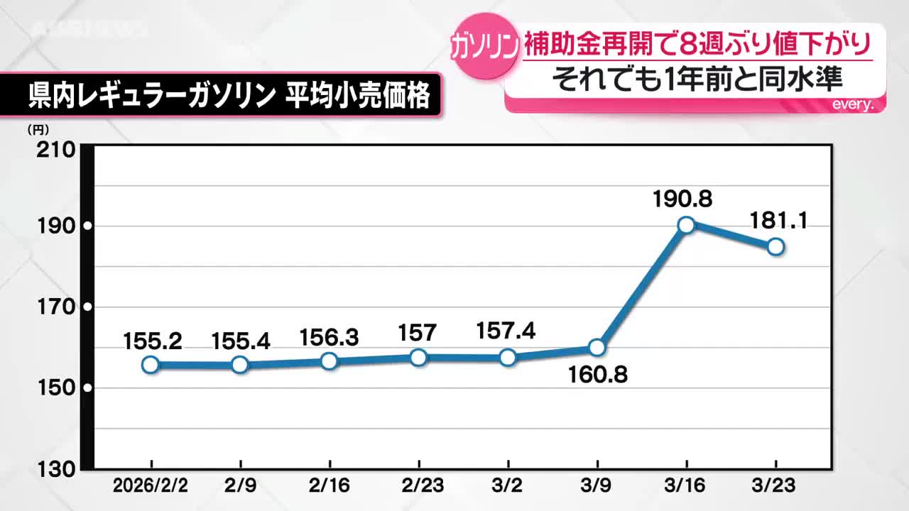 県内のガソリンの平均小売価格は181円10銭 史上最高…