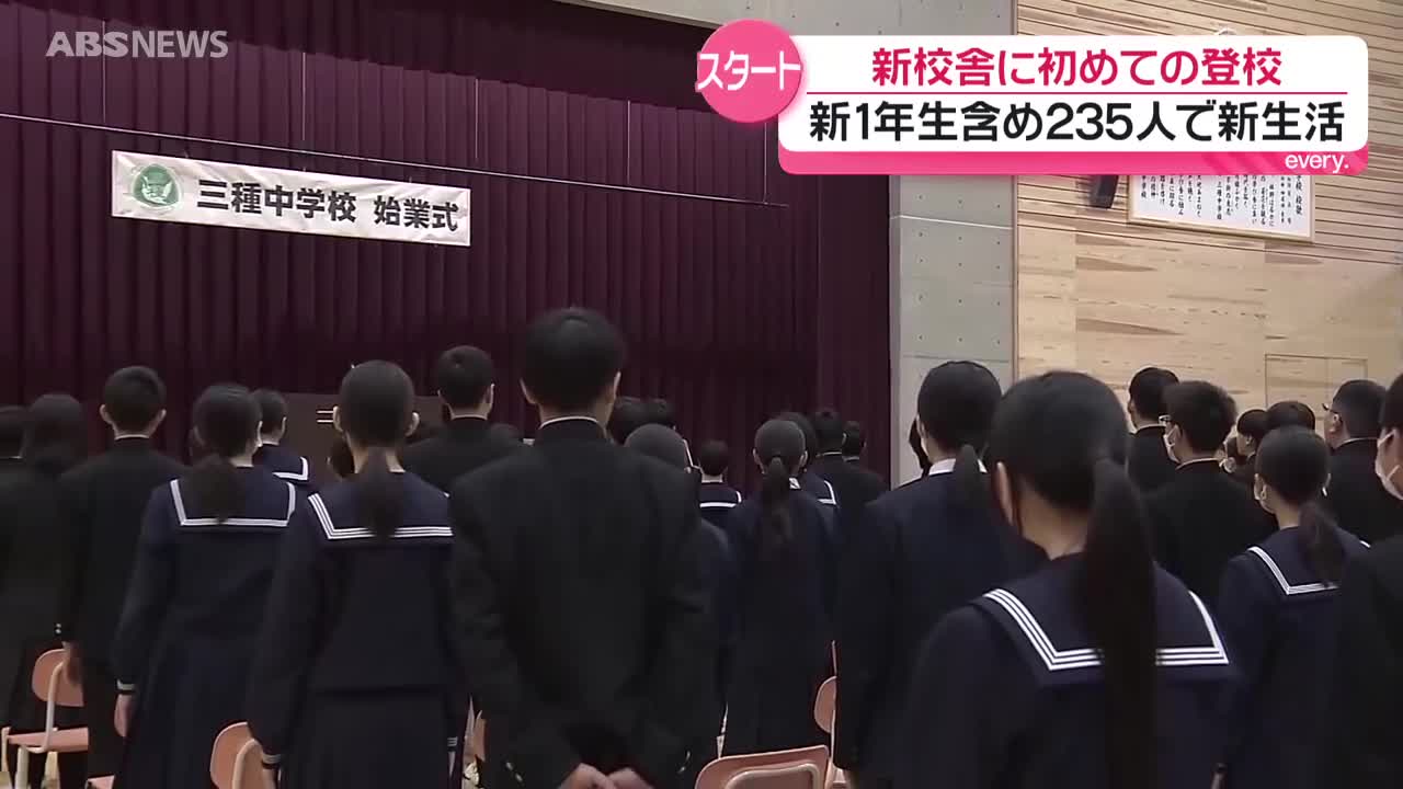 3校が統合して開校した三種中学校で始業式 新しい校舎で…