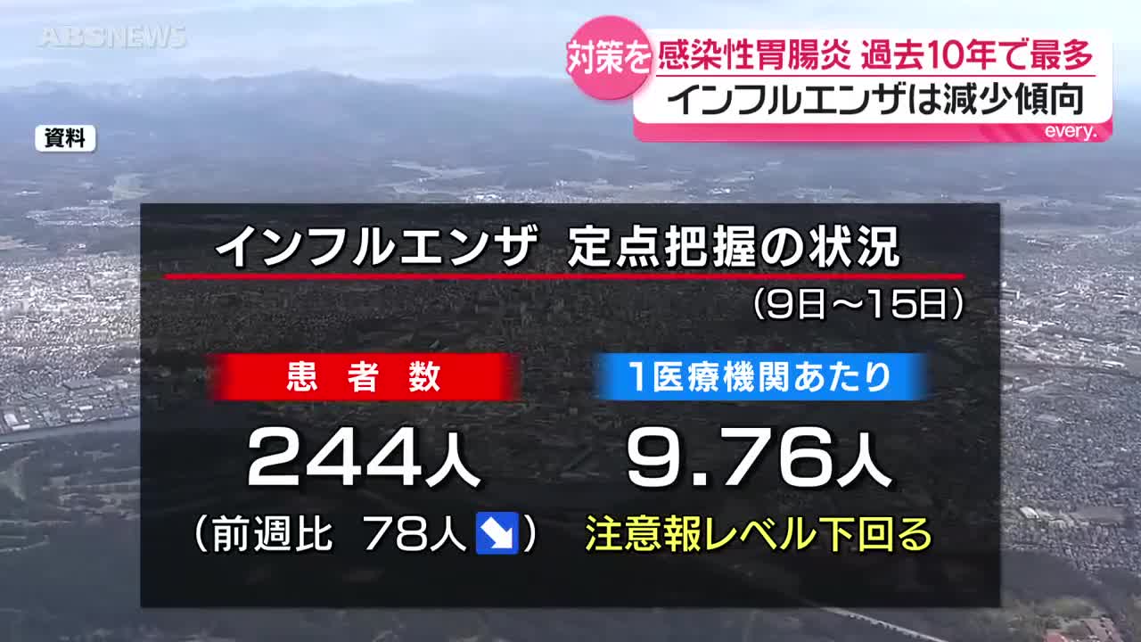インフルエンザ患者数注意報レベル下回る 感染性胃腸炎は…