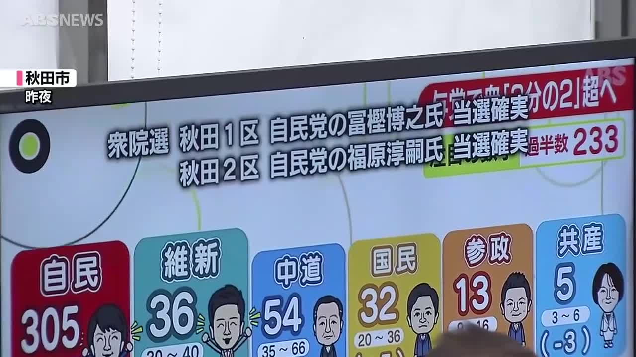 【速報】衆院選・秋田2区 自民・前 福原淳嗣氏(58)…