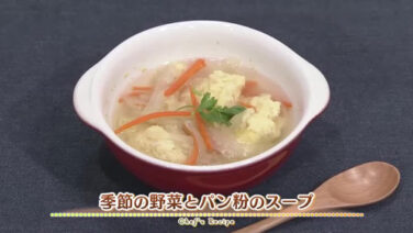 渡部恵美季節の野菜とパン粉のスープ 材料(4人分) 季節の野菜 適量 玉ネギ 1/2個 卵 2個 パン粉 1カップ スープの素(or中華だしなど) 小さじ1 塩、コショウ 各適量 青... 2026.01.09渡部恵美シェフズレシピ