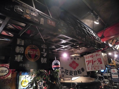 社長の趣味で小学生の頃から集めていたというバイクが約40台、看板が約200。そのほかにバイクのオイルなど。右を見ても左を見てもレトロ。そしてオシャレ!