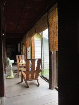 古民家の横にあるドアから外へ出ると