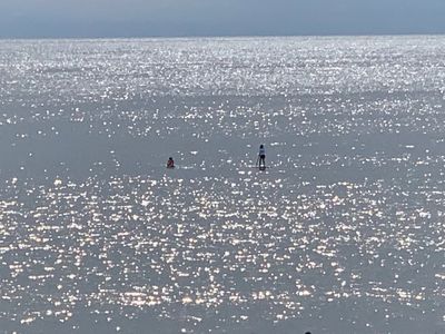 今日は、サーフィンをする子どもたちや、家族連れ、パドルを持って海や湖に立つ!スタンドアップパドル「SUP」を行う人の姿がありました。