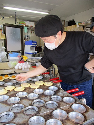 お店の奥では店主が忙しそうに大判焼きを焼いています。大人気のため、以前ラジパルがお邪魔した時より1台焼き台を増やしたそうです。