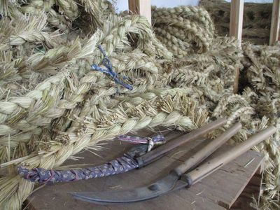 綱作りの現場には、藁が積まれて、その香りがいっぱいに広がっていました。