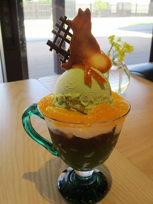 6月は抹茶とオレンジを組み合わせた、抹茶とオレンジのパフェ(800円)です。